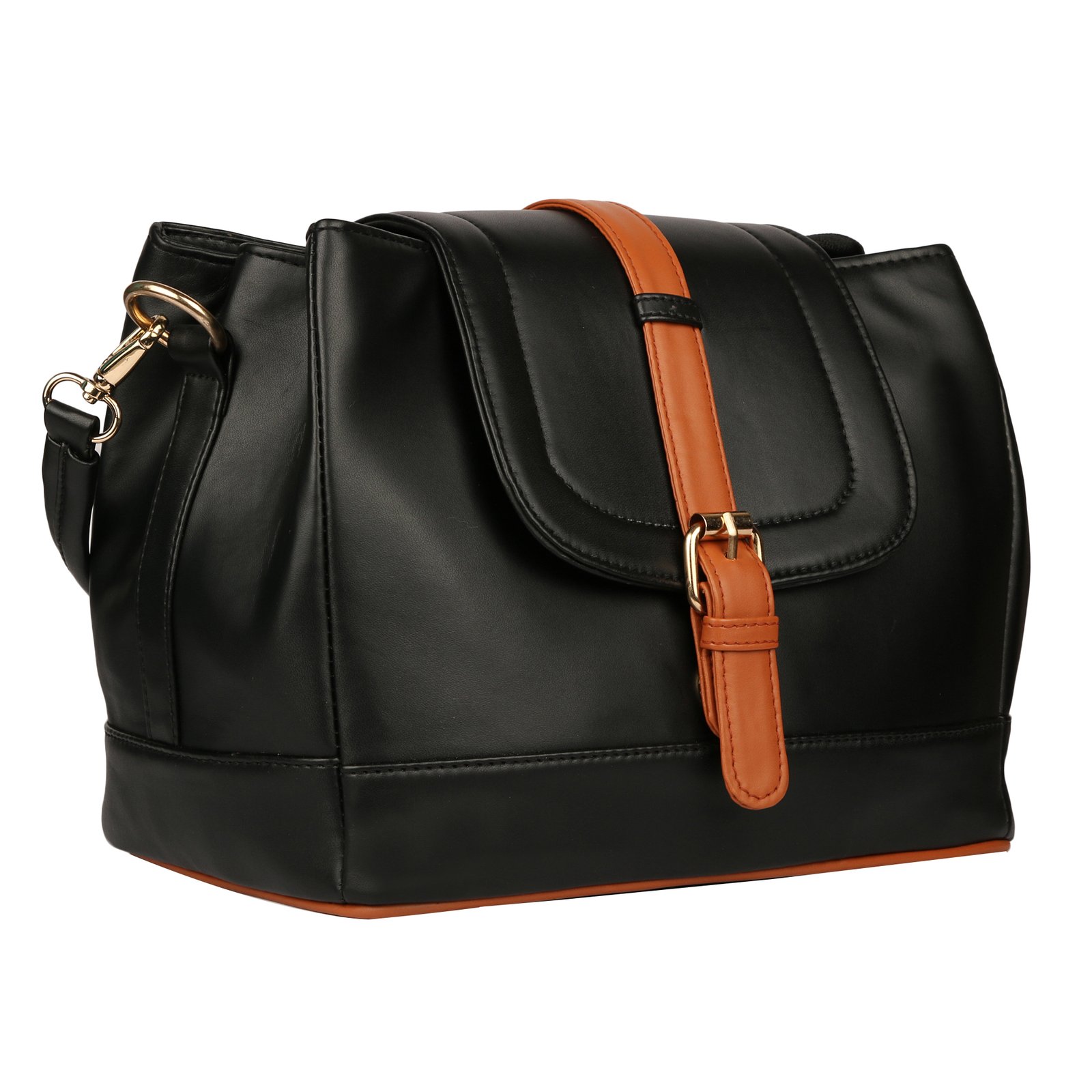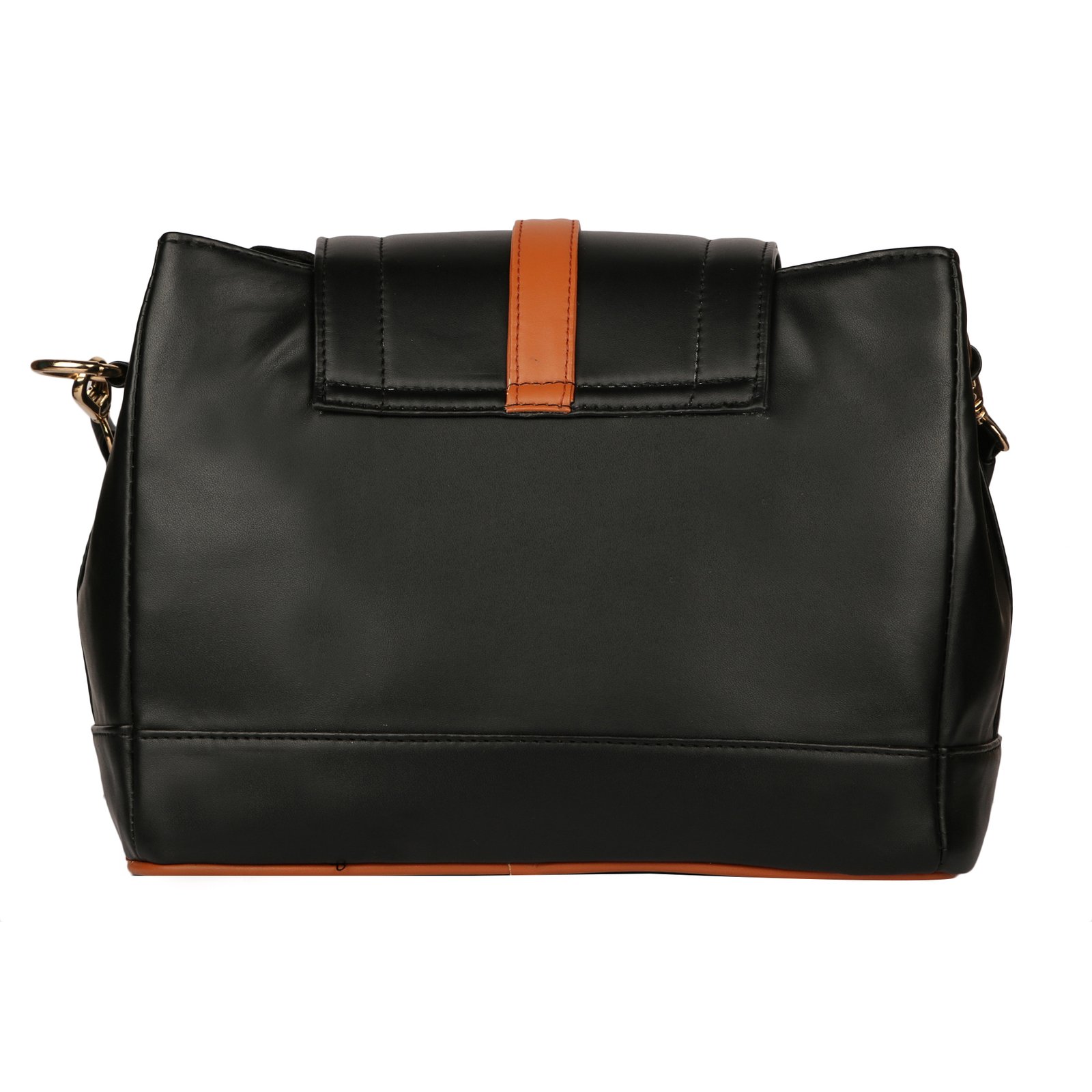 Step out in style with the stunning Roseberries Premium Two-Tone Structured Handbag, a perfect blend of elegance and utility. Designed for the modern woman, this handbag exemplifies sophistication with its sleek black body, tastefully contrasted by rich tan accents on the flap and base trim.