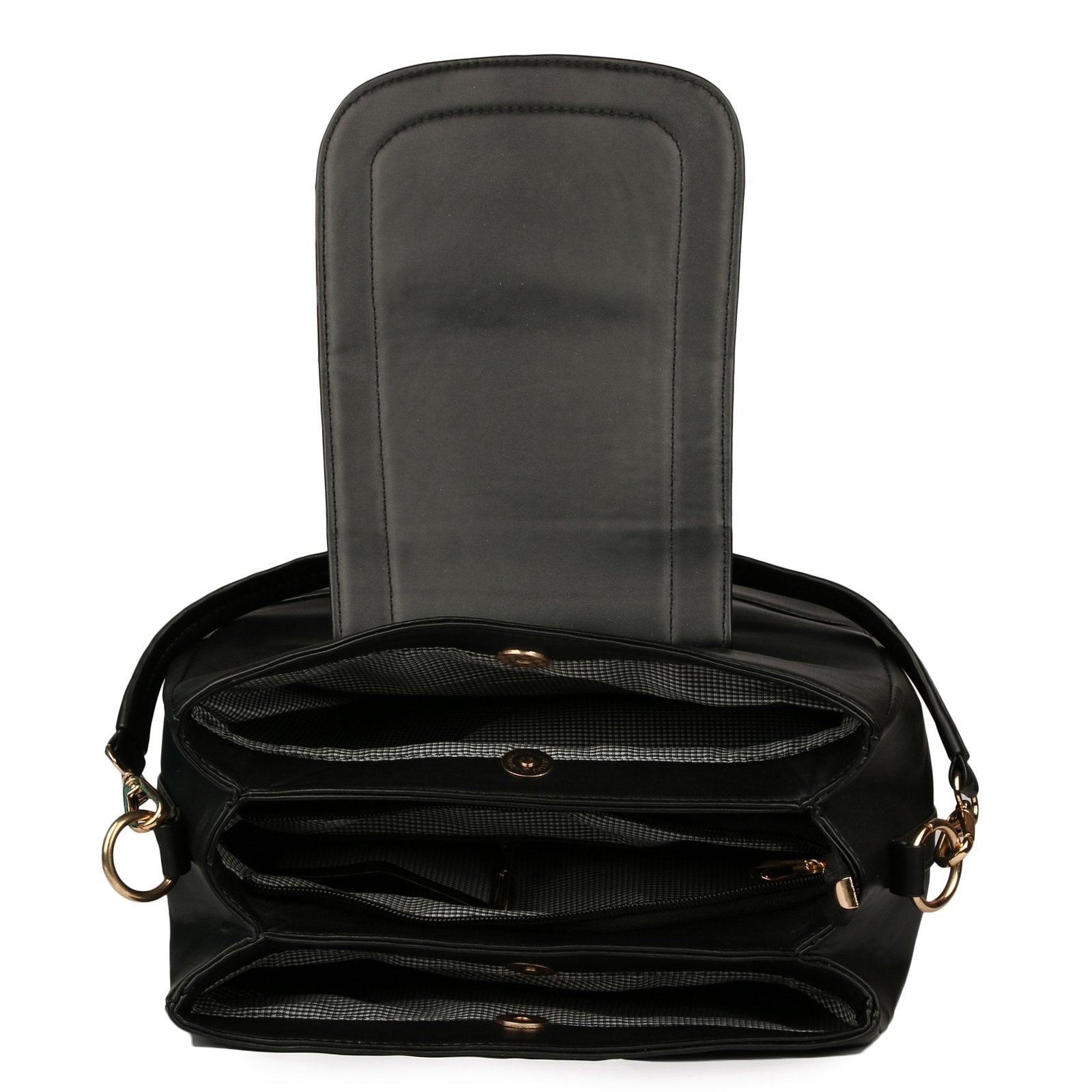 The front flap features a magnetic closure with a decorative buckle strap, adding a touch of vintage charm. Inside, you’ll find a spacious main compartment with multiple pockets, perfectly sized for all your daily essentials—whether it’s your phone, wallet, cosmetics, or keys.