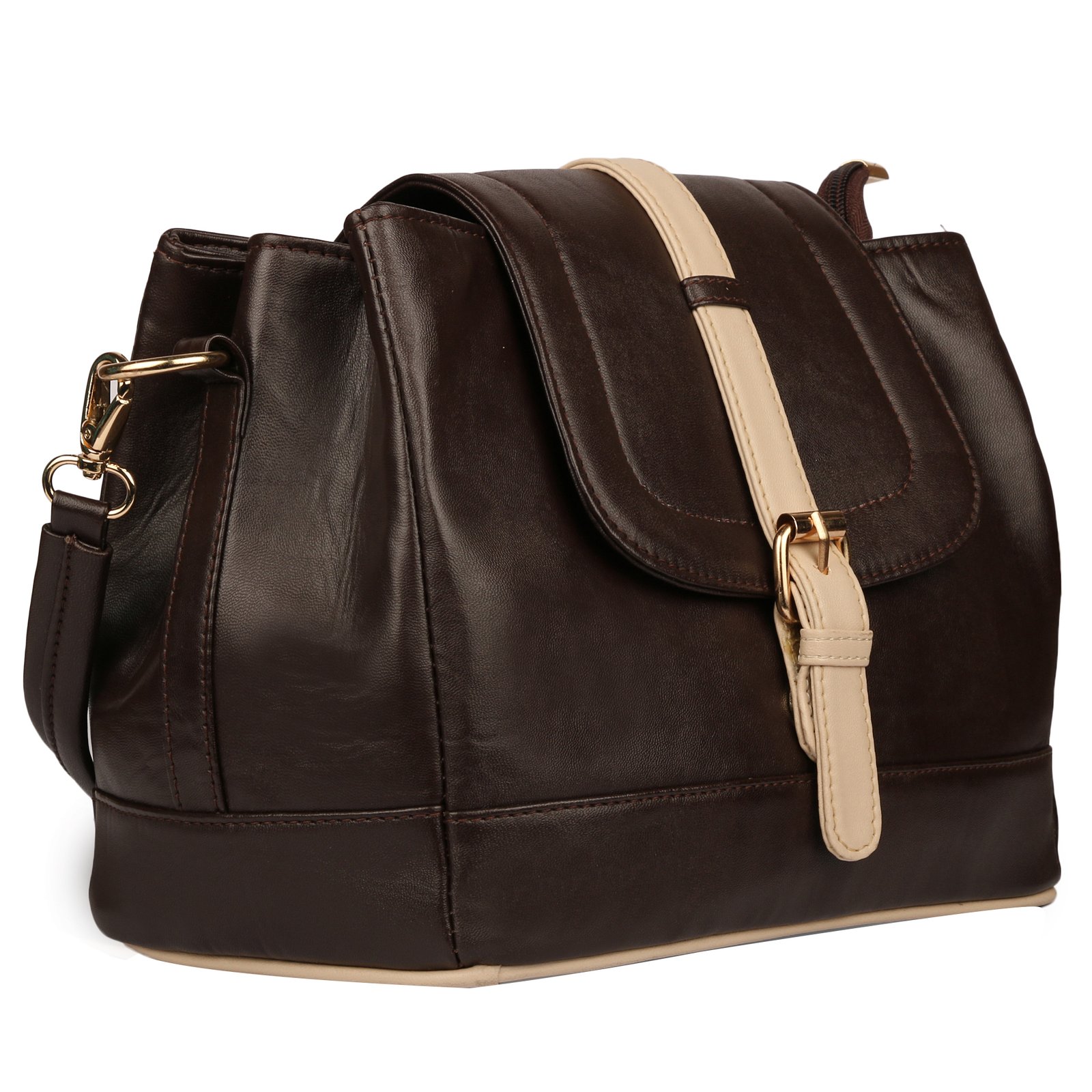 Roseberries Women Sling And Handbag Brown with Cream Strip color